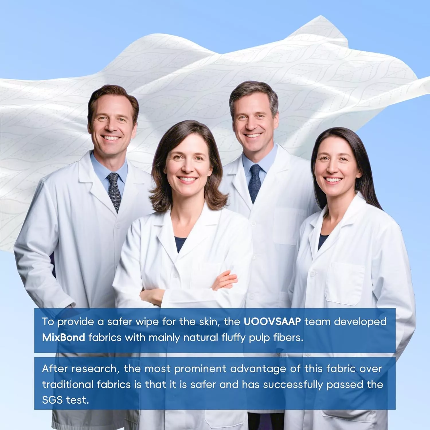 Одноразові рушники для обличчя Uoovsaap створені за допомогою вдосконаленої технології невованої тканини Tymus. Цей інноваційний процес зв'язує природні рослинні волокна без суворих хімічних речовин, в результаті чого тканина, яка є ультра м'якою, стійкою до сліз і сильно поглинаючої. Порівняно зі звичайними неробовиками, Mixbond пропонує чудову міцність, рівномірну текстуру та екологічно чисту біологічну розклад, що робить її ідеальною для чутливих шкіри та стійких розчинів по догляду за шкірою.